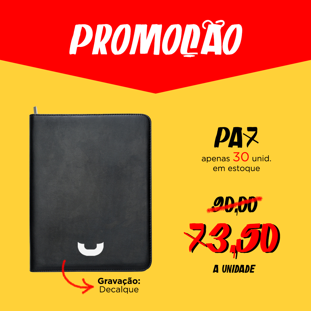 Pasta convenção de couro sintético com zíper, possui 2 compartimentos grandes para arquivar documentos, compartimento interno com zíper, 7 divisórias pequenas para documentos, suporte com visor para cartão de identificação, suporte para caneta(não acompanha caneta) e bloco com 20 folhas pautadas.