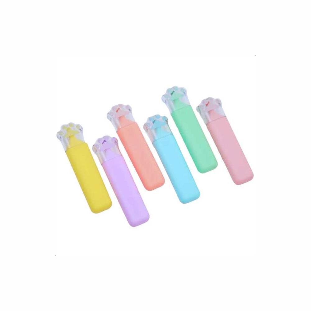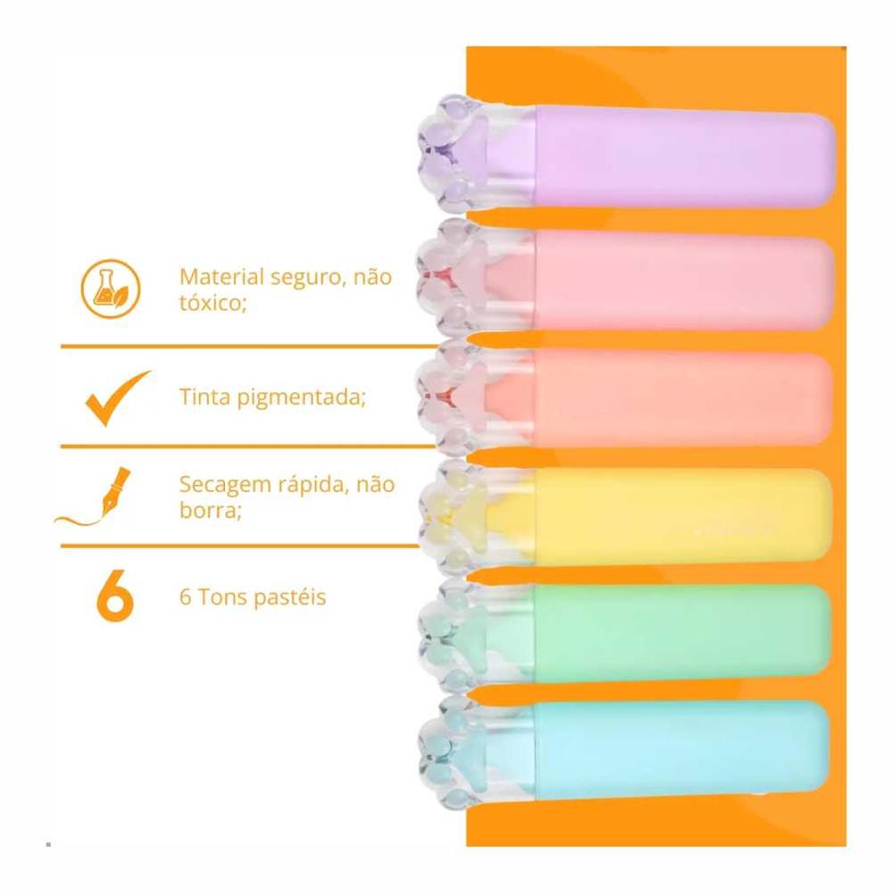 Kit contendo 6 Canetas Marca Texto Cute Patinha Gato.