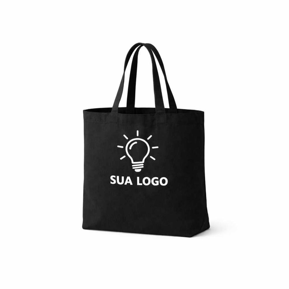 Sacola em brim leve resistente, modelo com fundo que proporciona maior capacidade e praticidade no uso diário. Ideal para ações promocionais e brindes corporativos.