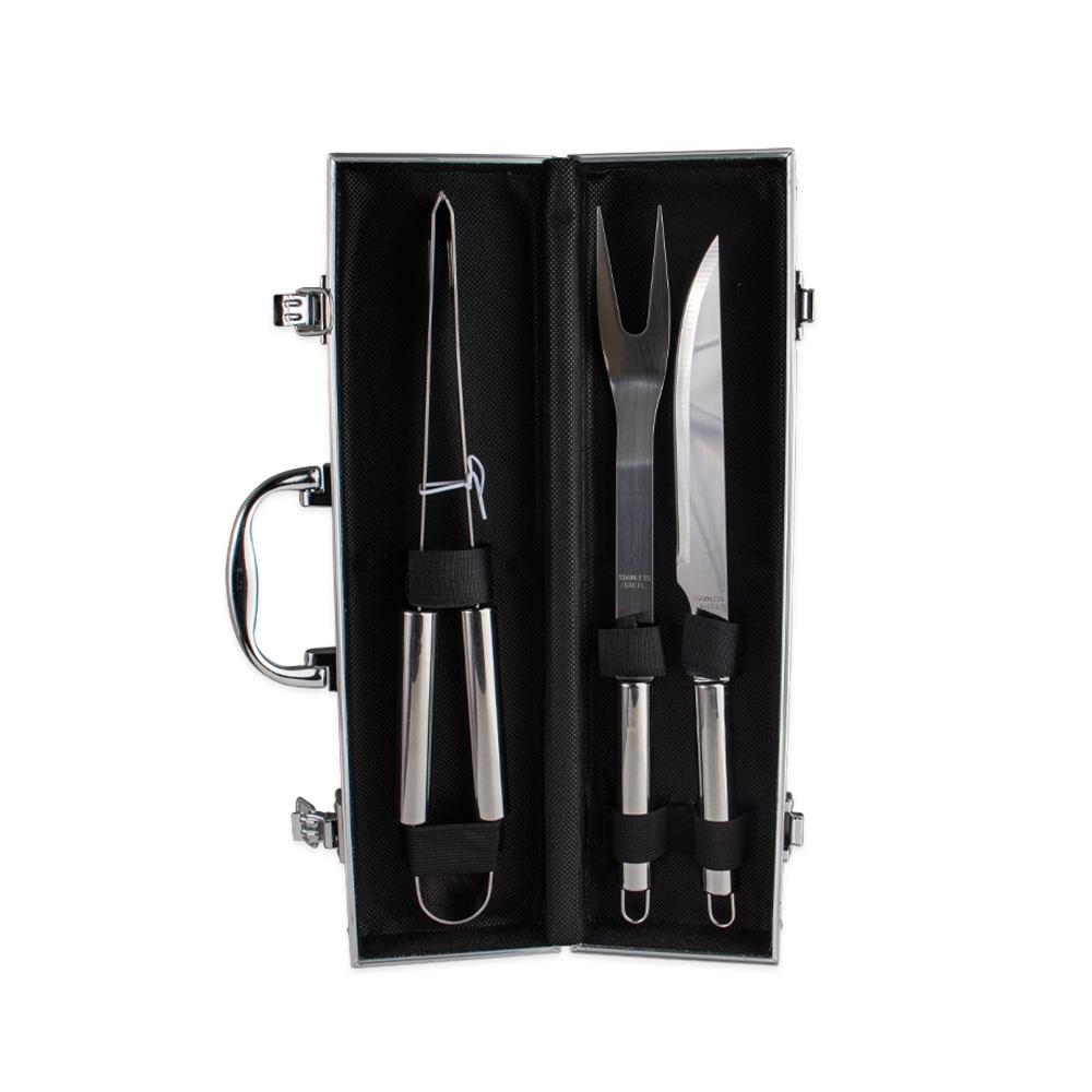 Prepare churrascos deliciosos com nosso kit de três peças, ideal para quem busca qualidade e precisão no preparo de carnes e outros alimentos. O conjunto inclui uma pinça, um garfo e uma faca de sete polegadas, acompanhados de uma elegante maleta de alumínio com plaquinha para personalização, garantindo mais exclusividade e organização.