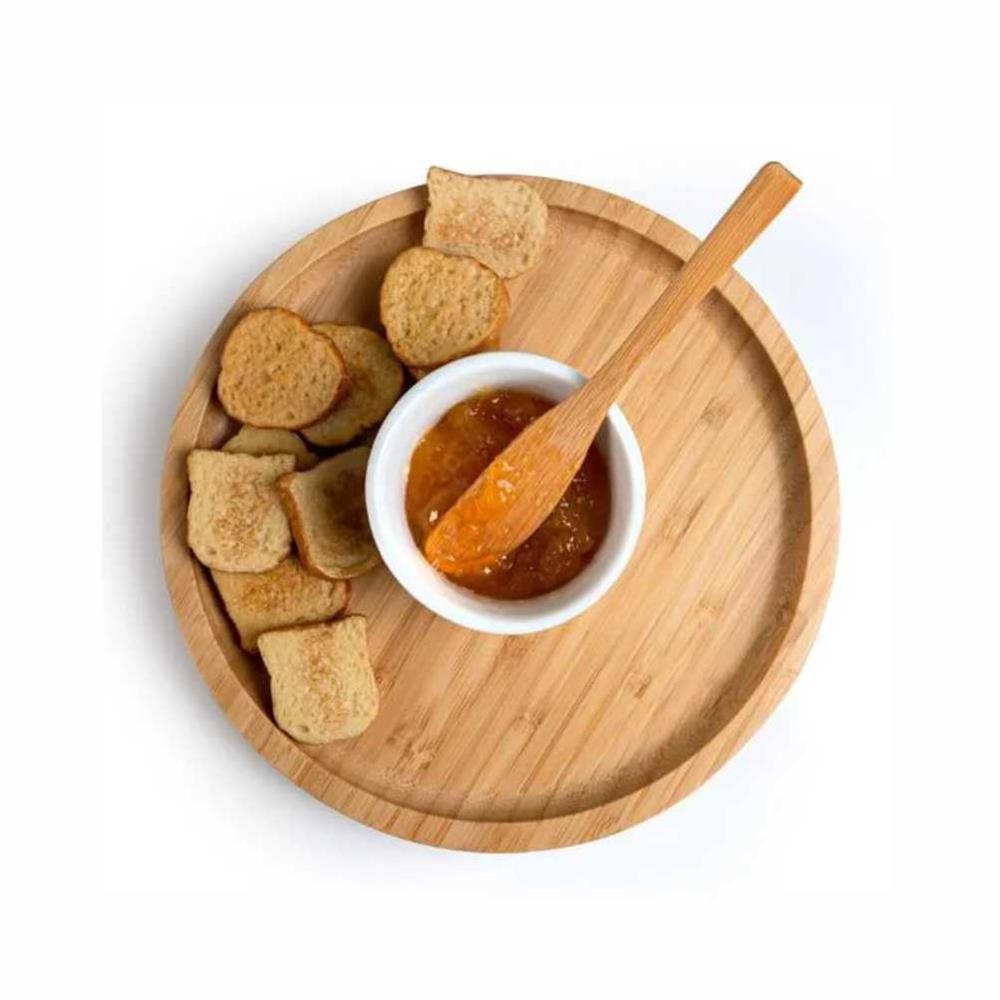 Kit para petisco. Conta com petisqueira e espátula em bambu; ramekin em porcelana.